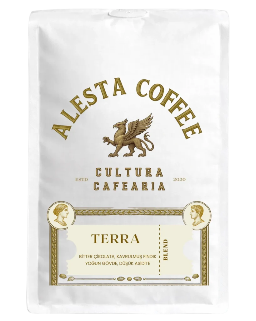 Terra Espresso Blend, %70 Arabica ve %30 Robusta çekirdeklerinin dengeli harmanıyla hazırlanmış, yüksek gövdeli ve düşük asiditeli güçlü bir espresso karışımıdır. Bitter çikolata ve kavrulmuş fındık notalarıyla zenginleşen aromatik yapısı; yoğun krema ve kalıcı lezzet sunarak hem ev hem profesyonel kullanım için ideal bir espresso deneyimi sağlar.